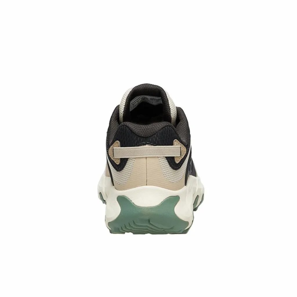 Beim Obermaterial wird vollständig auf synthetisches Mesh-Gewebe gesetzt, das für mehr Stabilität lediglich partiell, vor allem im Zehenbereich durch TPU unterstützt wird. Dadurch ist der Schuh angenehm leicht und flexibel, ideal also um für sportliche Einsätze herzuhalten. Der Schuh ist dadurch aber auch besonders atmungsaktiv, also bestens für hohe Temperaturen geeignet