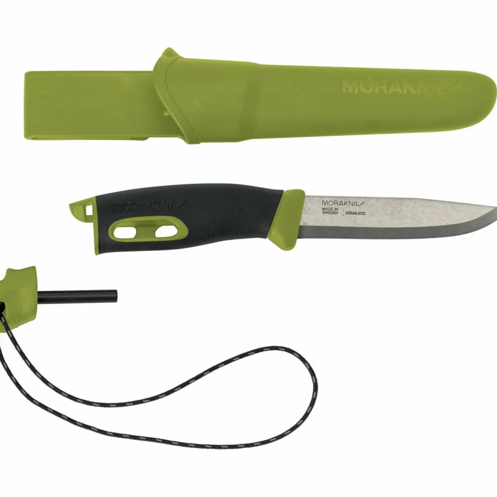 Bei der Klinge wurde auf Nachhaltigkeit gesetzt. Der 12C27-Stahl besteht aus recyceltem Material und ist, wie bei Mora üblich, bereits „out of the box“ extrem scharf. Die Klingenrückseite ist ideal, um kräftige Funken mit dem Feuerstahl zu erzeugen. Und sollte die Klinge nach zahlreichen Einsätzen einmal stumpf werden, kannst du sie mit handelsüblichen Schärfern problemlos auf ihre ursprüngliche Schärfe zurückbringen.