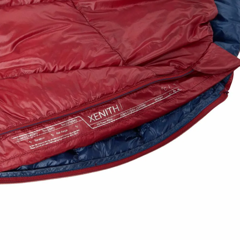Mit nur 369 g (Größe regular) ist der Xenith I einer der leichtesten Schlafsäcke in unserem Sortiment. Ausgestattet mit hochwertiger Gänsedaune aus europäischer Herstellung, bietet dir der Schlafsack angenehme Nächte bei Temperaturen bis ca. +5 °C. Die Daunenfüllung mit einer Bauschkraft von 900+ cuin sorgt für hervorragenden Loft bei gleichzeitig bester Komprimierbarkeit. Dadurch bleibt auch das Packmaß extrem klein. Zum Schutz vor Feuchtigkeit ist die Außenseite mit einer PFC-freien DWR-Imprägnierung versehen.
