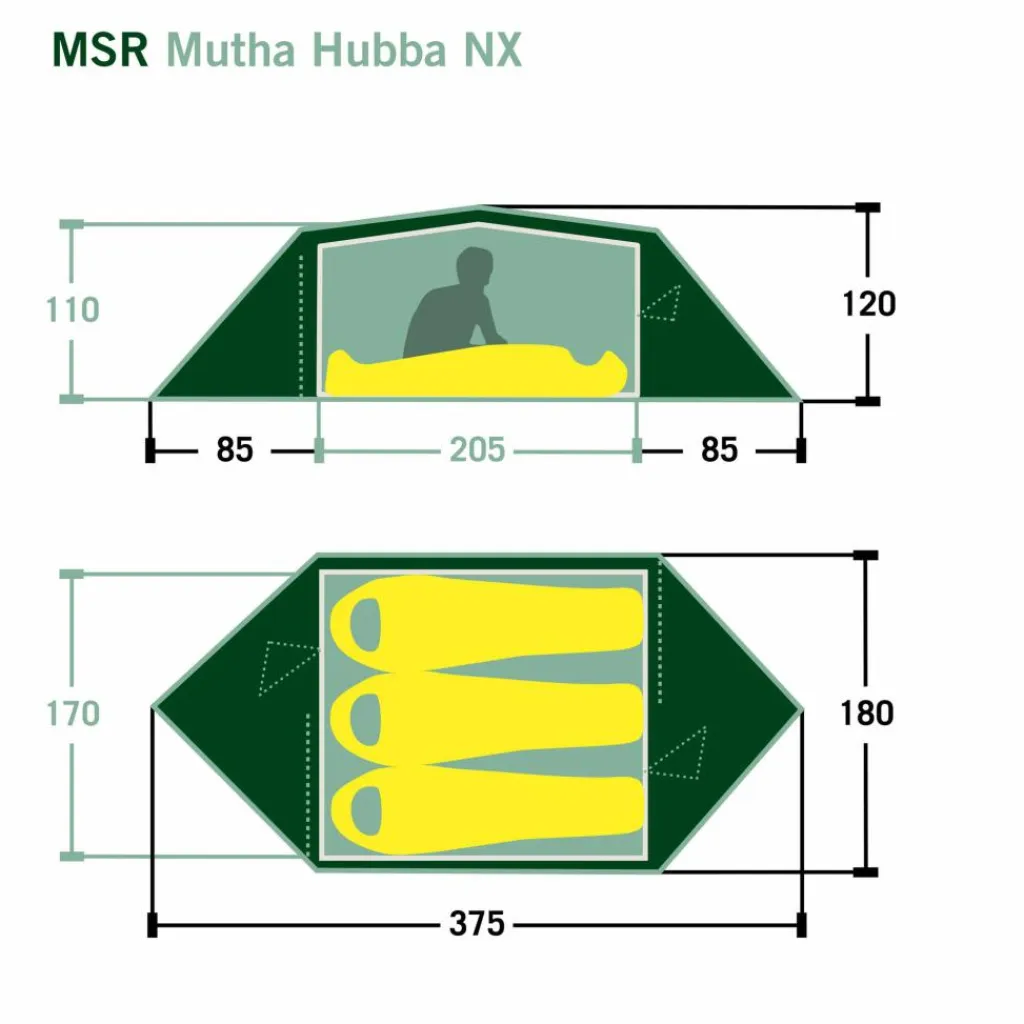Sehr leichtes Trekkingzelt in Kuppelform für 2-3 Personen. Das Mutha Hubba wiegt nur knapp über 2 kg, ist klein verpackbar und bietet mit zwei Apsiden viel Stauraum für die Ausrüstung.