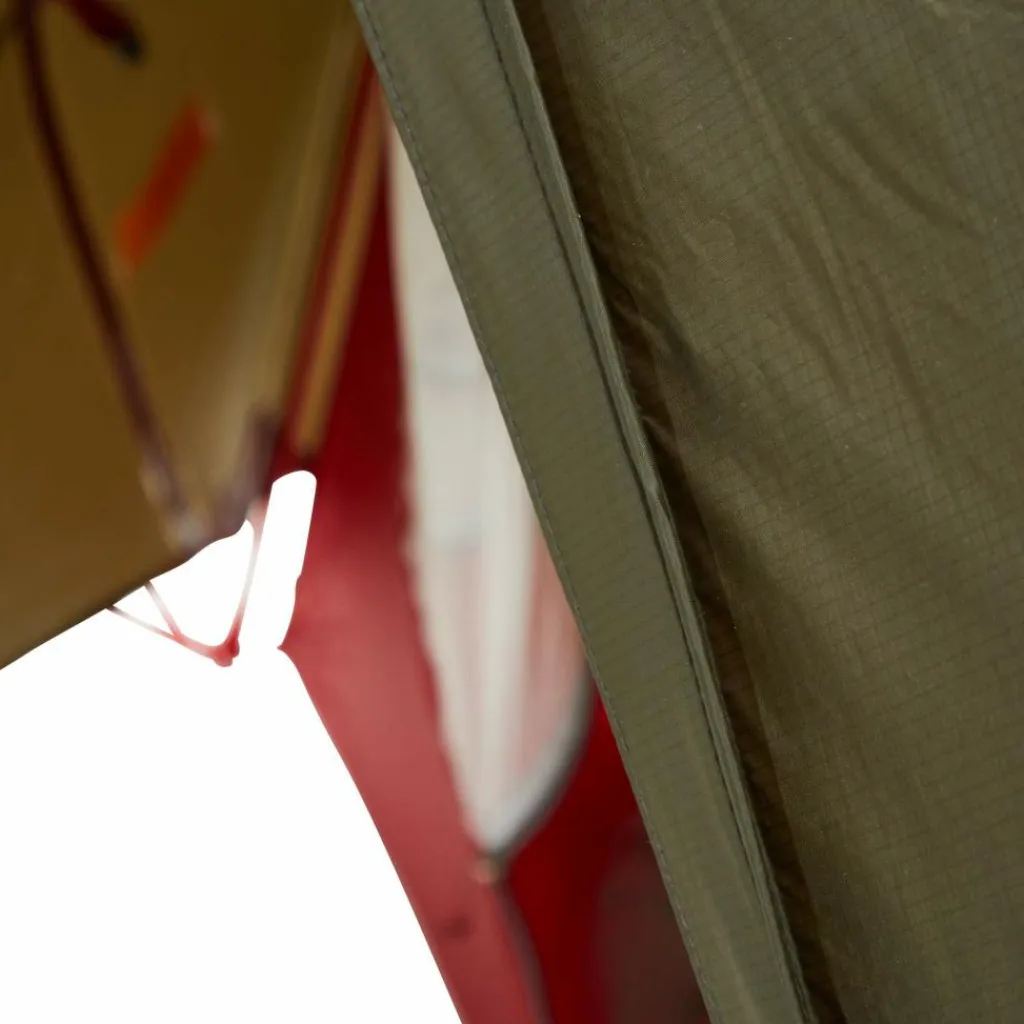 Zwei Apsiden verstauen die Ausrüstung. Sie können teilweise oder komplett geöffnet werden, was eine Panoramasicht auf die Landschaft ermöglicht und das Einrichten und Zusammenpacken des Zeltes erleichtert.