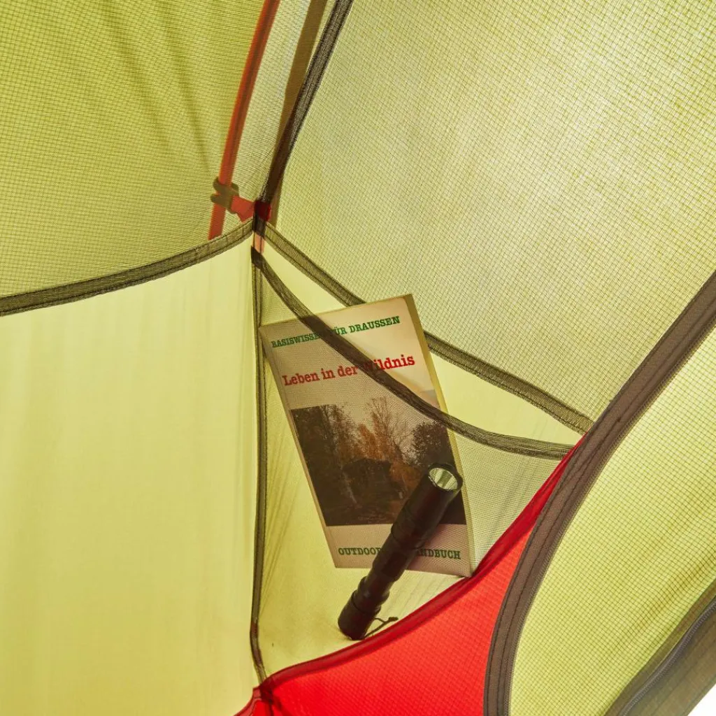 Durch die spezielle Gestängekonstruktion ist viel Raum im Innenzelt vorhanden. Du kannst mit vier Personen bequem im Innern sitzen und Karten spielen. Die Wände sind steil gestellt und im Kopfbereich wird das Innenzelt stark aufgespannt, wodurch du viel Platzfreiheit hast.