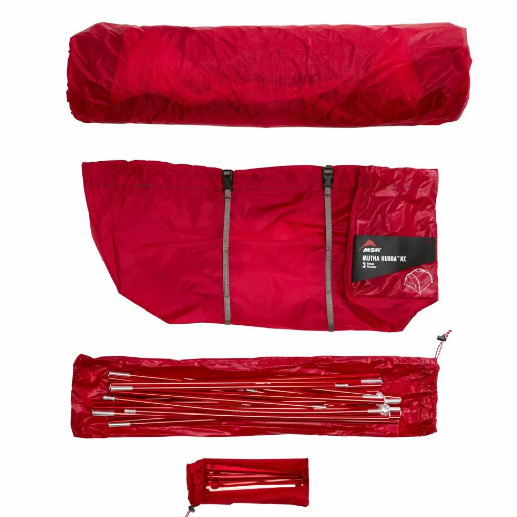 Mutha Hubba NX, Packbeutel, Aluminiumheringe, 6x Zeltspannleinen (rot, reflektierend)