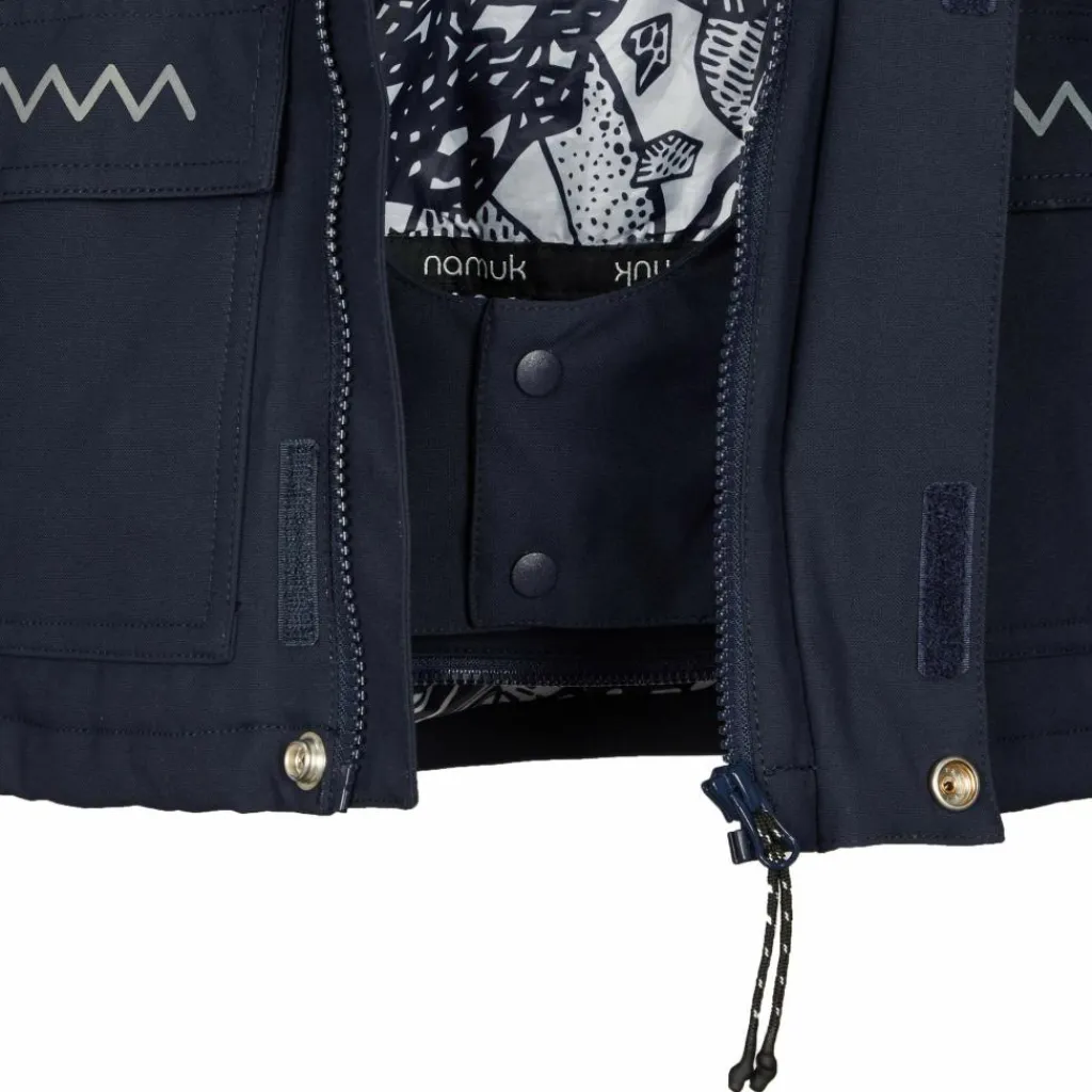 Ein Schnee- und Windfang im Saum sorgt für noch mehr Komfort beim Hinabdüsen der Piste. Zusätzlich verhindern die mit Klettverschluss einstellbaren Ärmelabschlüsse sowie die Windschutzleiste über dem Front-RV, dass kalter (Fahrt-)Wind nach innen dringt. Bei deinen Lütten wird die funktionelle Jacke bestimmt auch mit der toll gestalteten Innenseite für Freude sorgen. Ob beim sportlichen Einsatz oder im Tal – die Mission wird ihre Aufgaben stilsicher erfüllen.