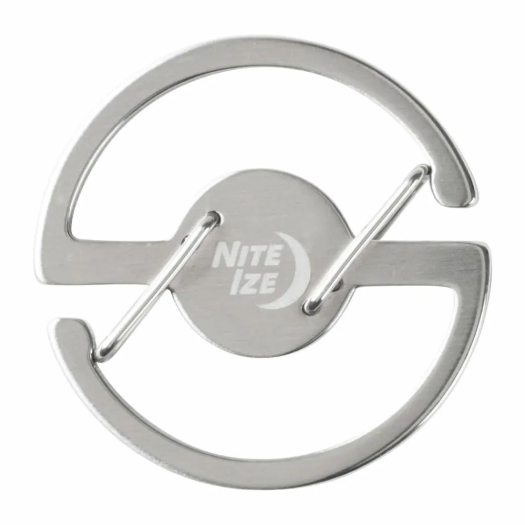 Runder Karabiner aus Edelstahl mit Doppelverschluss und zwei Federschnappern, ideal zur sicheren Aufnahme und Verwahrung mehrerer Schlüssel.