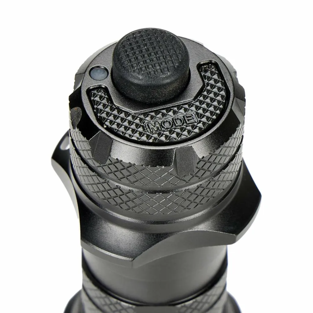 Mit einer Spotintensität von 65.400cd und einer Leuchtweite von bis zu 510 m wirst du nicht lange suchen müssen. Die Search-Funktion lässt sich bequem über den halb gedrückten Modus-Schalter am Heck der Taschenlampe aktivieren.