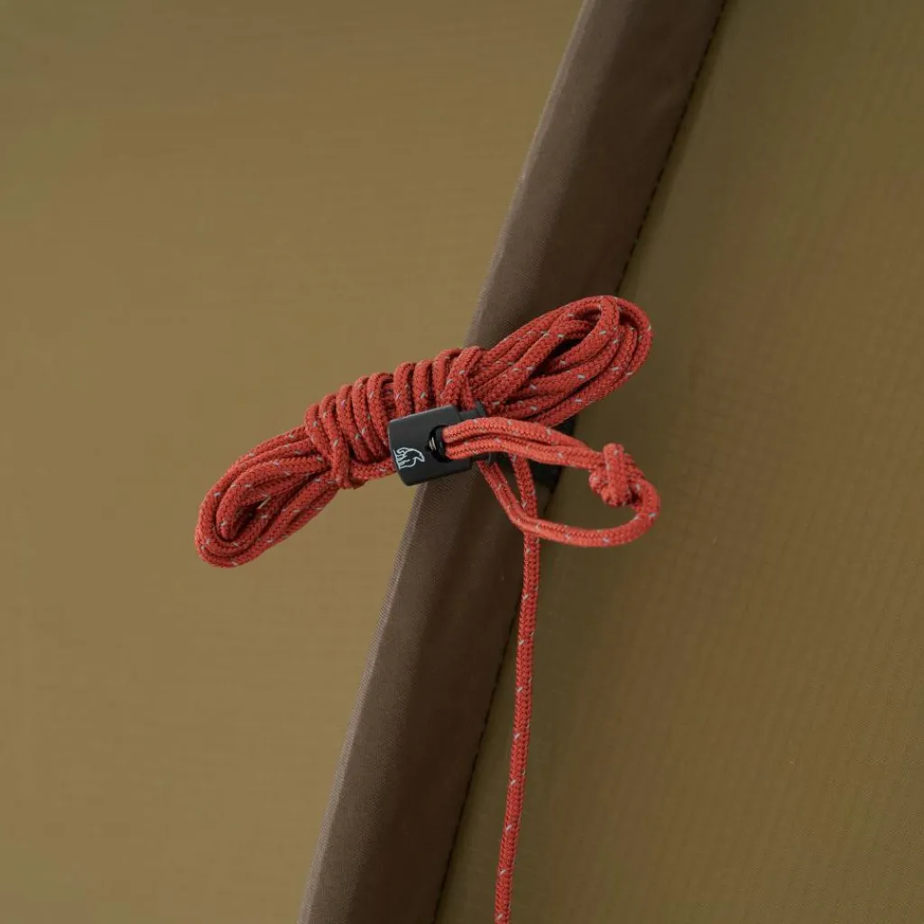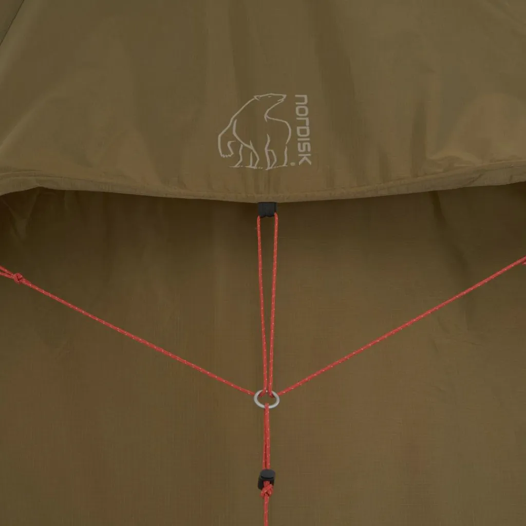 Die Gestängebögen sind unterschiedlich lang. Dadurch entsteht eine nach vorne und hinten abfallende Form, die stabiler im Wind steht und das Gesamtgewicht reduziert. Für frische Luftzufuhr sorgen die beiden Lüfter an den Stirnseiten. Sie sind mit einem Moskitonetz ausgestattet, welches unliebsame Bewohner draußen hält.
