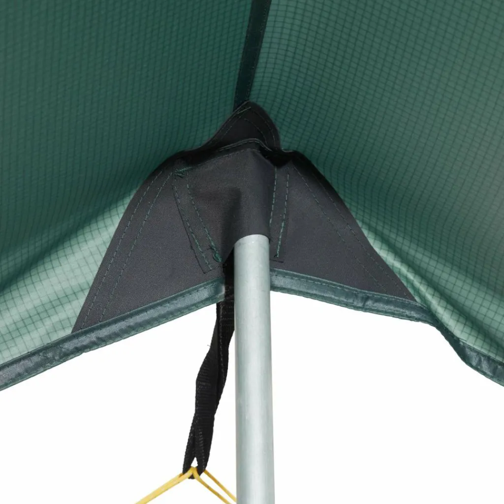 Ein Tarp kann als Alternative zu einem Zelt oder als geschützte Erweiterung zu einem Zelt genutzt werden. Dabei sind zahlreiche Aufbauvarianten möglich. Jeder Abspannpunkt ist mit einer reflektierenden Zeltleine ausgestattet. Die beiden Hauptabspannpunkte sogar mit je zwei, damit die Tarpstange vernünftig abgespannt werden kann. Die Tarpstangen können in die seitlichen Schlaufen gesteckt werden. Neu sind die Einschubtaschen aus Hypalon an den verstärkten Punkten, in denen ein Ast oder eine Tarpstange eingeschoben werden kann. Das macht das Tarp noch vielseitiger in seinen Aufbauvarianten!