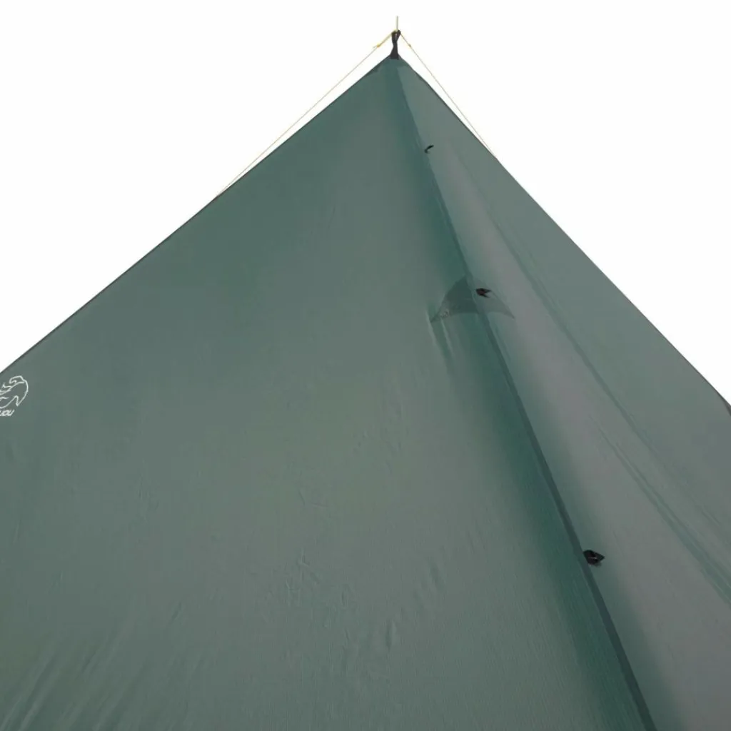 Großes silikonbeschichtetes Tarp aus Ripstop–Nylon mit geringem Gewicht und kleinem Packmaß. Unzählige Aufbauvarianten machen es zum vielseitigen Begleiter auf Tour.