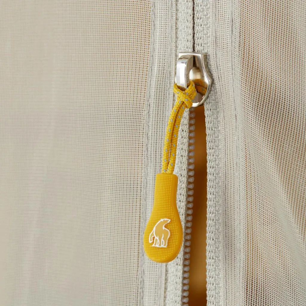 So enthält das Set ein passendes Gestänge sowie einen Satz Heringe und eine Wäscheleine. Zum Abspannen sind passende Leinen mit Wimpeln enthalten, in denen du Kleinkram verstauen kannst. Die Standard-Zip-Anhänger ersetzt du mit den Zughilfen im Set. Alle Teile sind farblich aufeinander abgestimmt und bringen so frischen Wind und ein paar Farbtupfer ins Camp!