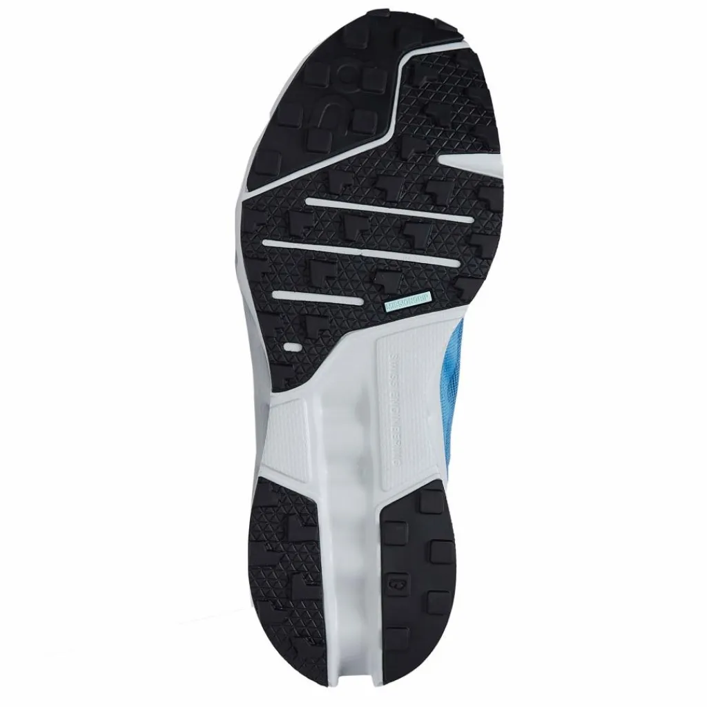 Auffallend ist beim Cloudsurfer Trail vor allem die Anordnung der Cloud-Dämpfungselemente. Im Zehen- und Ballenbereich sind sie horizontal angeordnet, im Mittelfußbereich kippen sie leicht nach hinten, wodurch zum einen der Vortrieb verbessert, vor allem aber die Abrollbewegung des Fußes auch bei hohem Tempo optimal unterstützt wird. Die Laufsohle ist mit griffigem Profil ausgestattet, dass up- und downhill für bestmöglichen Halt sorgt. Dank der moderaten Profiltiefe kannst du den Trailrunningschuh auch auf härteren Untergründen noch gut nutzen.