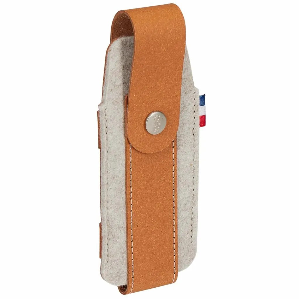 Dieses Filz-Messeretui wurde aus recycelten Plastikflaschen und regeneriertem Leder hergestellt. Es eignet sich für die Opinel-Modelle No. 09 und 10, Pilzmesser und No. 10 mit Korkenzieher.