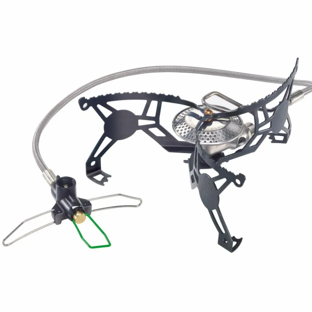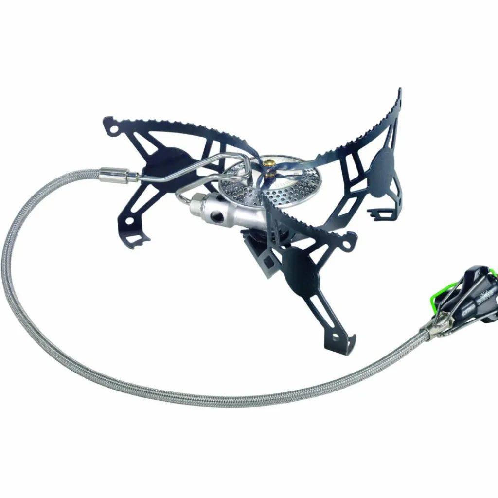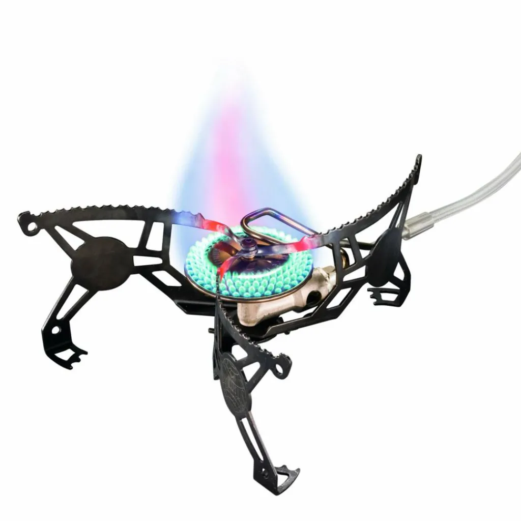 Die Vorteile: Sehr niedrige Bauhöhe, hohe Stabilität, Flüssiggaszufuhr bei niedrigen Temperaturen. Die umgedrehte Aufstellung der Kartusche ermöglicht das Kochen bei Minusgraden.