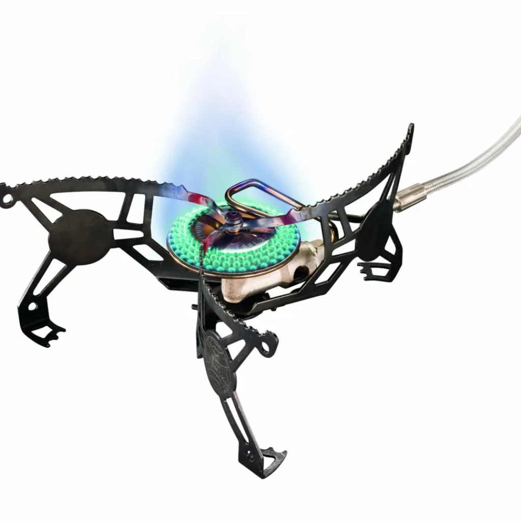Der Kocher arbeitet mit zwei Brennmodi und kann so viel Brennstoff sparen. Dazu wird die Gaskartusche entweder aufrecht hingestellt oder dank der integrierten Klappbeine am Ventil auf den Kopf gestellt. Dies erhöht die Flüssigbrennstoffzufuhr, was zu einer erhöhten Leistung, aber auch zu mehr Brennstoffverbrauch führt.