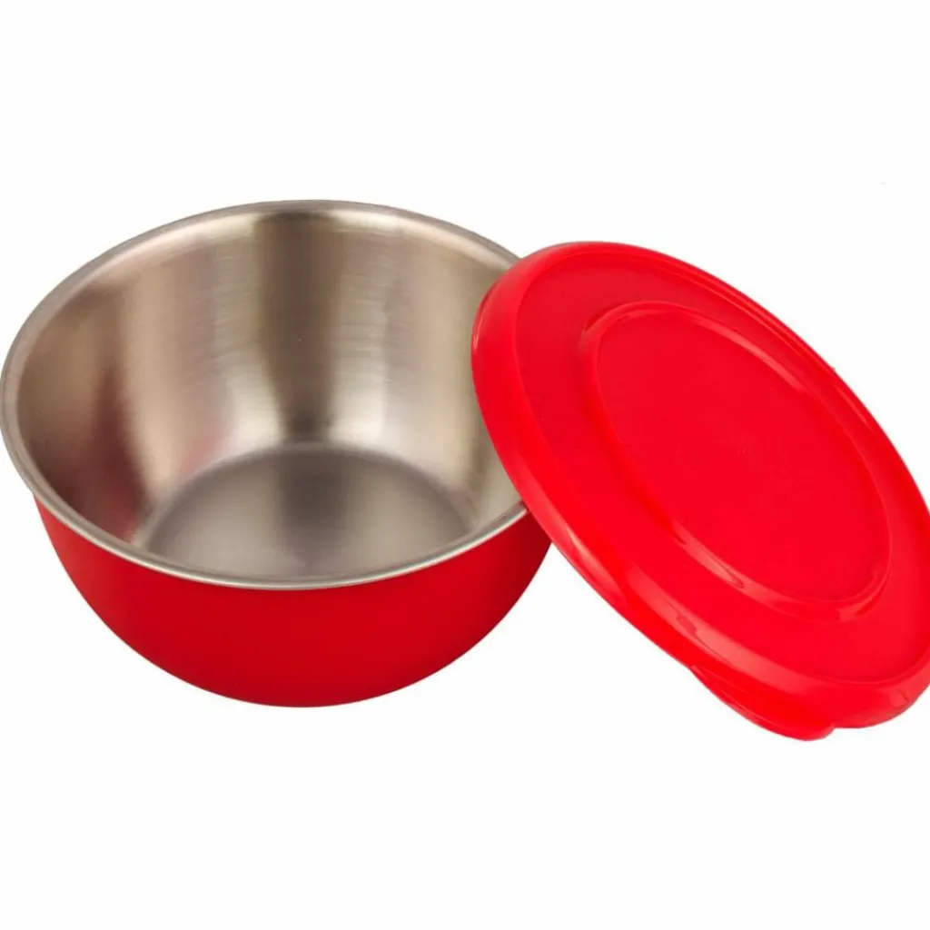 Schüssel-Set aus Edelstahl mit passendem Deckel und bunter Kunststoffhülle. Geeignet für das morgendliche Müsli, den Salat beim Grillabend oder eine wärmende Suppe.