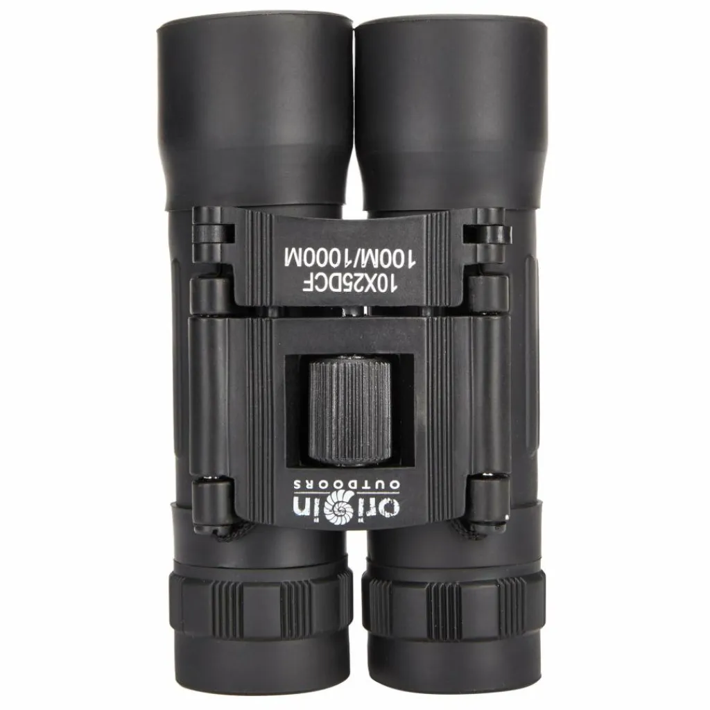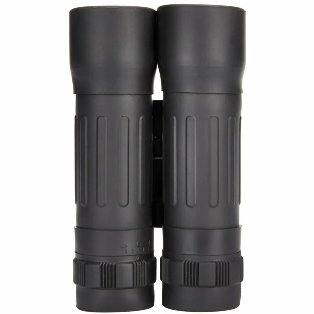 Fernglas für Einsteiger mit 10-facher oder 12-facher Vergrößerung, kompaktem Faltmaß und Sehstärkenregulierung. Im Lieferumfang inbegriffen sind ein Gürteletui, Umhängeband und ein Reinigungstuch.