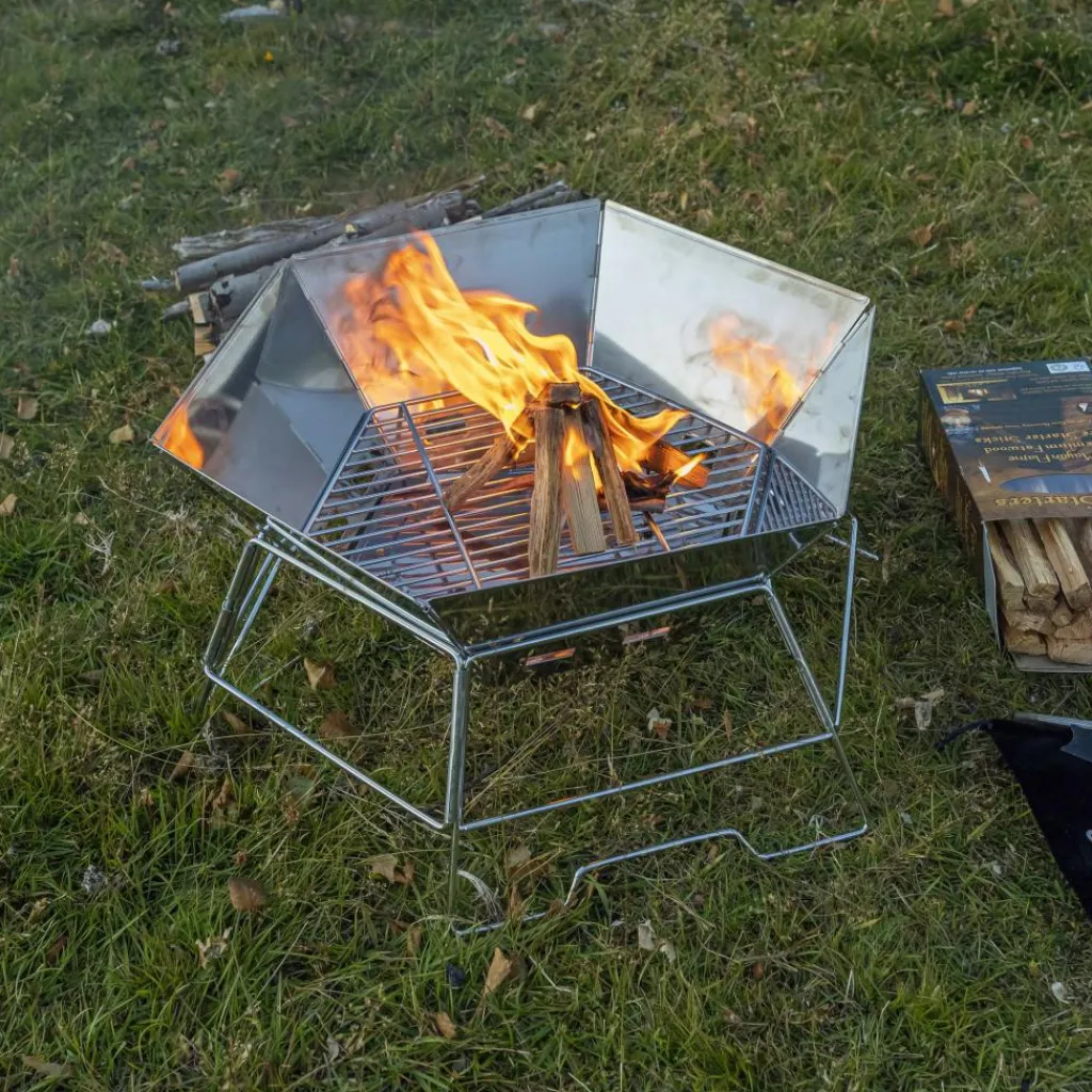 Faltbare Schale für gemütliche Lagerfeuer oder gesellige Grillabende. Der Grillrost bietet mit 45 x 40 cm ausreichend Platz für Grillgut.