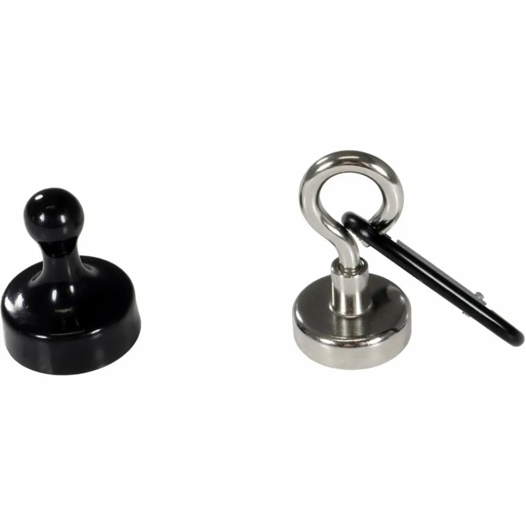 Dieser magnetische Haken erleichtert das Aufhängen von Zeltlaternen, Handtüchern und andern Utensilien. Der Magnet mit 5 kg Haltekraft lässt sich durch das Gegenstück auch an Stoffbahnen befestigen.