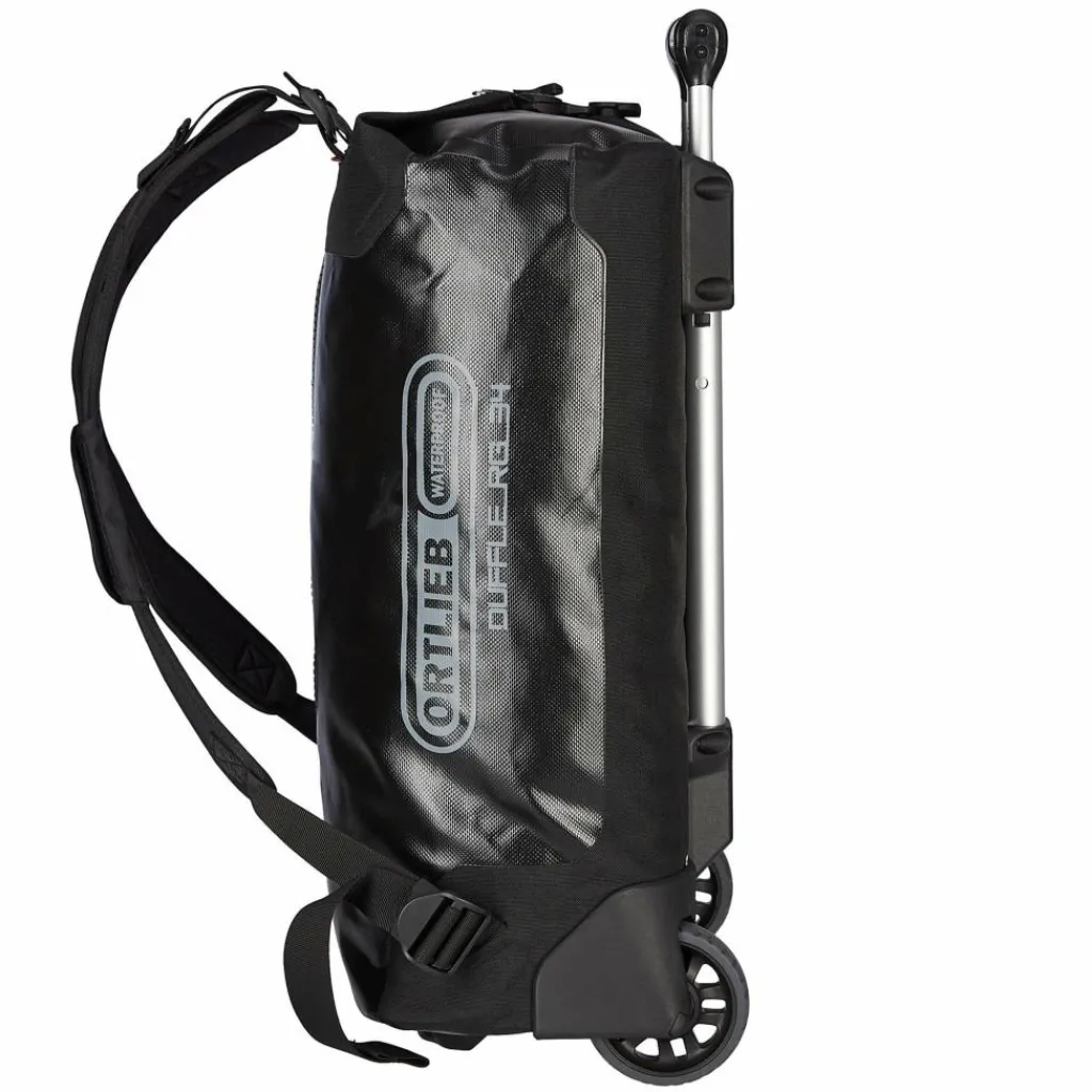 Fährt dank großer Rollen, starkem Chassis und Teleskopgriff höchst komfortabel und ist wasserdicht (IP67): Die Duffle RG ist eine robuste Reisetasche mit Rollsystem und zusätzlichen Schulterträgern.