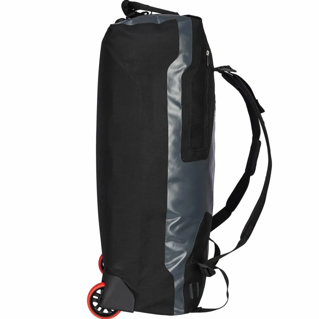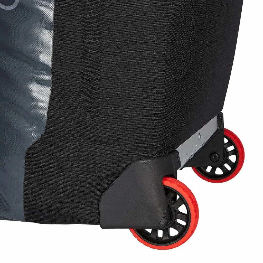 Dadurch ist die Reisetasche mit Rollen vielseitig einsetzbar. Auch die Tragemöglichkeiten bieten Flexibilität. So kann die Duffle mithilfe der gepolsterten Schulterträger kurzzeitig wie ein Rucksack auf dem Rücken getragen werden. Oder du ziehst sie hinter dir her, was dank der großen Rollen auch in unebenem Gelände komfortabel geht. Um Gewicht zu sparen, z. B. auf Flugreisen, hat Ortlieb auf einen Teleskopgriff verzichtet. Stattdessen verfügt die Duffle RS GT über einen längenverstellbaren Griff zum Hinterherziehen.