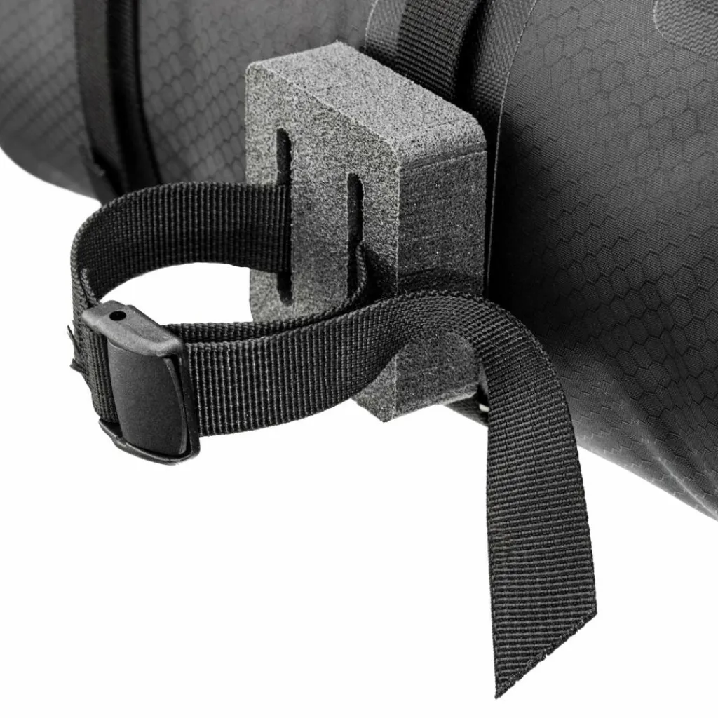 Lenkertasche für die Montage an allen Lenkertypen. Mit seitlichem Rollverschluss, Kompressionsventil und starken Gurten zur Fixierung. 9 l Taschenvolumen.