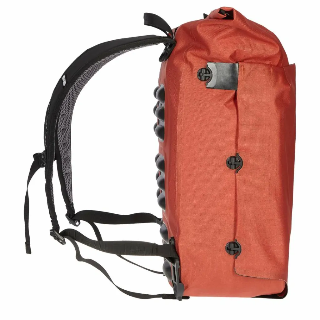 Der Clou: Du kannst es von der einen Seite auf die andere Seite in Sekunden umklappen und fixieren. Fertig ist die Fahrradtasche, respektive der Rucksack! Einfacher kann man samt Tasche gar nicht vom Drahtesel auf Schusters Rappen wechseln. Das Flap schützt jeweils die abgedeckte Seite. Und es bewahrt dich vorm Schmutz, der eventuell vom Hinterrad an deine Packtasche geschleudert wurde.
