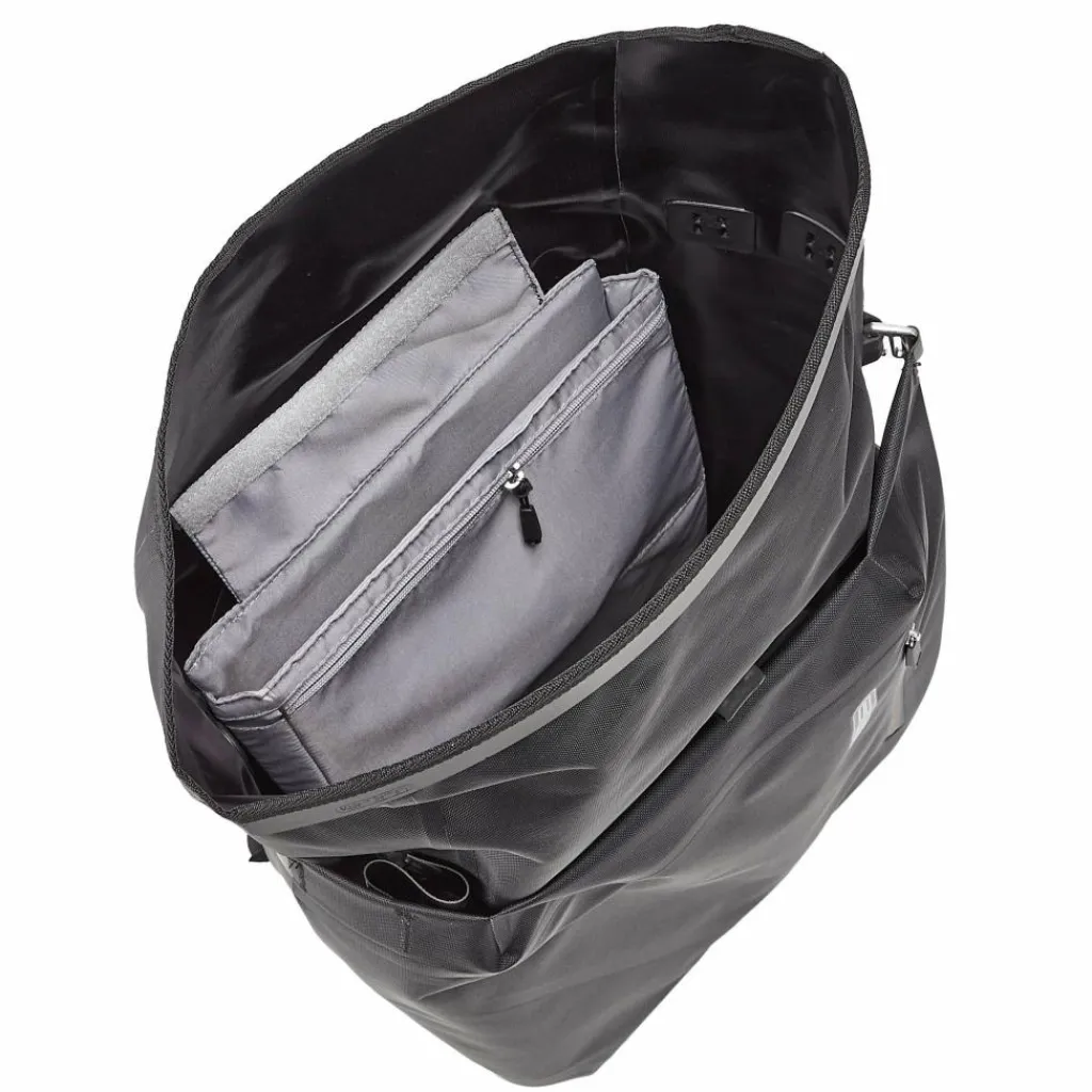 In der Rucksack-Position hat das Flap außerdem noch ein RV-Fach, das du als Rucksack-Vorfach nutzen kannst. An der Seite hat der Rucksack eine Netzaußentasche, im Hauptfach eine Laptop-Innentasche.