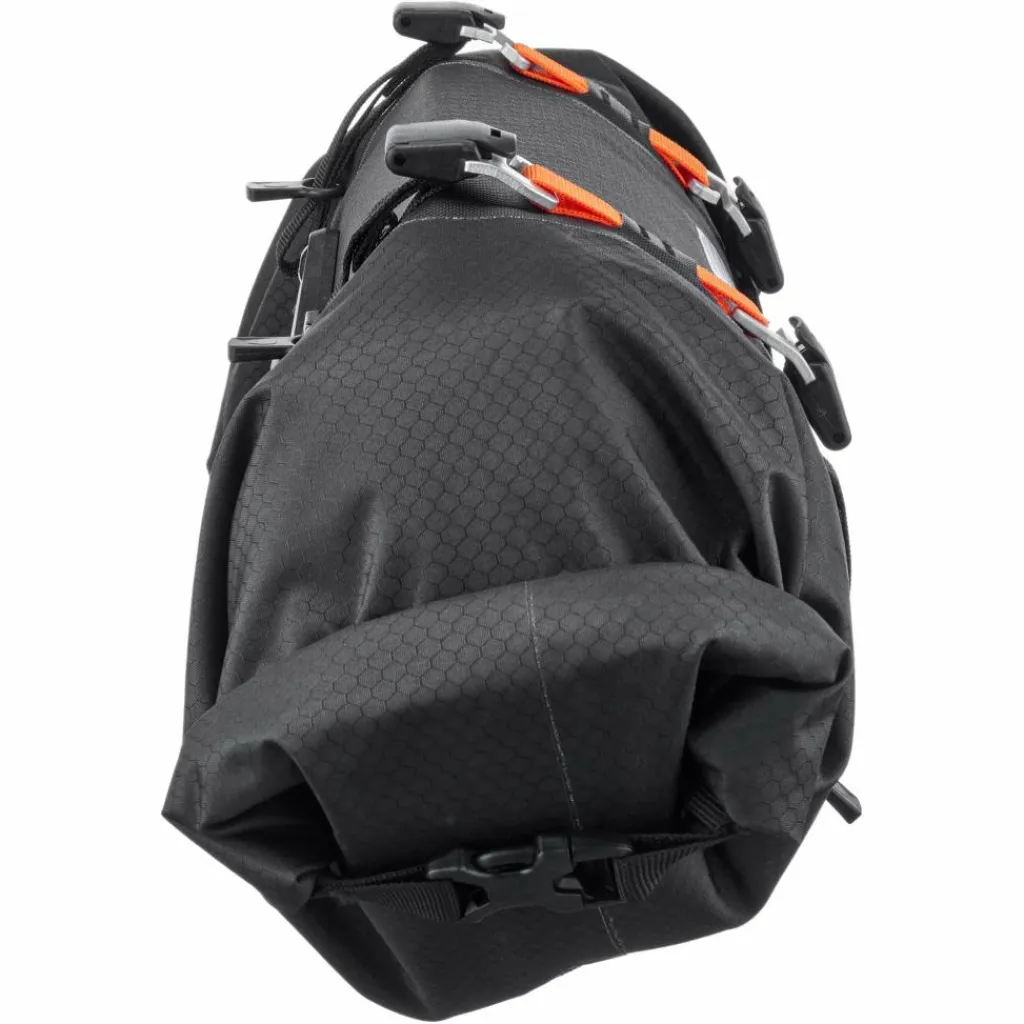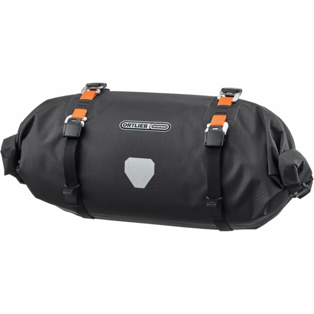 Die robuste Gepäckrolle hat viel Volumen und hält ihren Inhalt zuverlässig trocken. Je ein Rollverschluss an den Enden erlaubt schnellen und komfortablen Zugriff auf den Taschen-Inhalt. Die 4 Leichtmetallhaken mit Klemmschnalle am Riemen dienen der Kompression und können zudem das Ortlieb Accessory-Pack (separat erhältlich) auf der Vorderseite des Handlebar-Pack Flex befestigen. Für deinen Lenker brauchst du als Adapter ein Ortlieb Handlebar-Mounting-Set, um das Handlebar-Pack Flex sicher an deinem Bike zu fixieren.