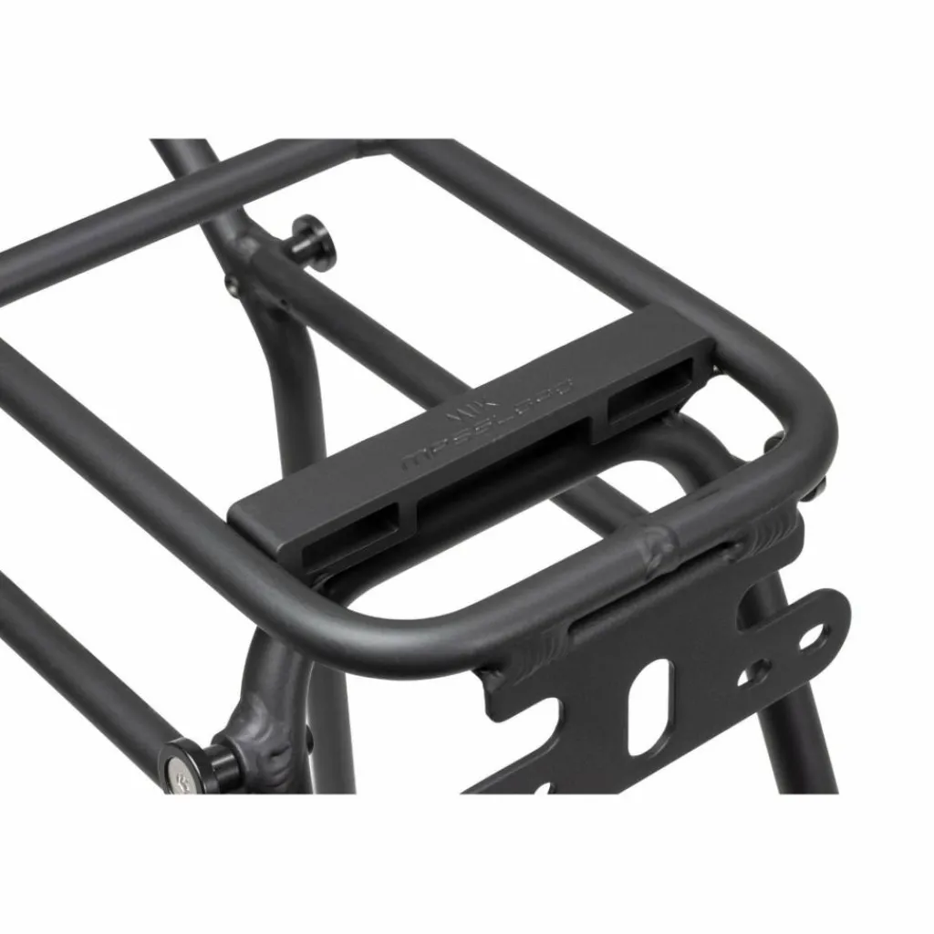 Der Gepäckträger wird mit vier Befestigungspunkten am Fahrradrahmen befestigt und bildet so eine kompakte, stabile und sichere Einheit für lange Radreisen. Die QL3-Aufhängepunkte sind tief angebracht, um das Gewicht nahe an die Achse zu bringen und den Schwerpunkt niedrig zu halten; das garantiert eine ruhige Fahrt. Die tief angebrachte Strebe erfüllt den gleichen Zweck für ältere QuickLock-Systeme.