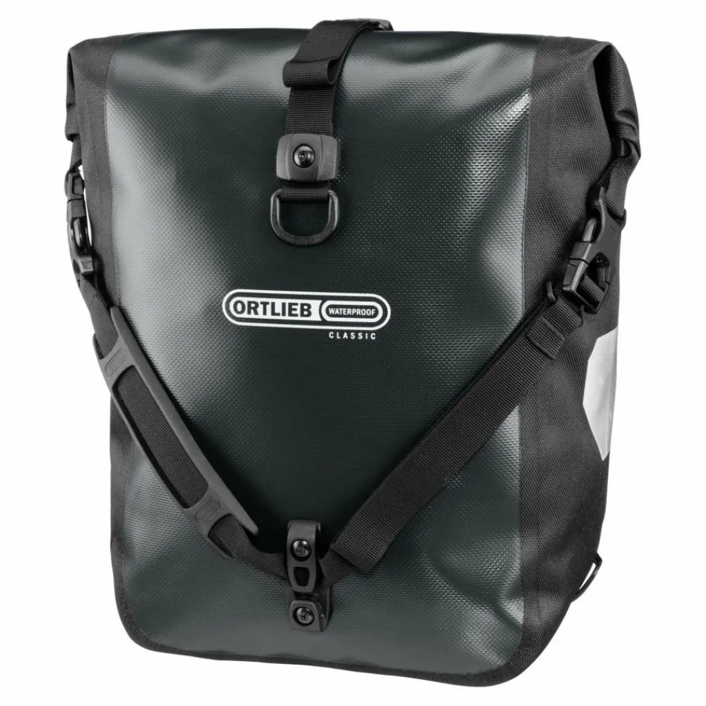 Die nahezu unverwüstlichen Ortlieb-Radtaschen mit Rollverschluss und Innentasche bestehen aus einem Lkw-Planen-ähnlichen Material, das komplett staub- und wasserdicht ist. Alle Nähte sind hochfrequenzverschweißt und daher dauerhaft wasserundurchlässig.