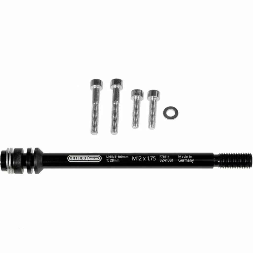 Universelle Steckachse mit M6-Innengewinde an beiden Seiten, um das Befestigen eines Gepäckträgers (Ortlieb Quick-Rack) oder eines Anhängers zu ermöglichen. Mit den Spacern an deinen Rahmen anpassbar.