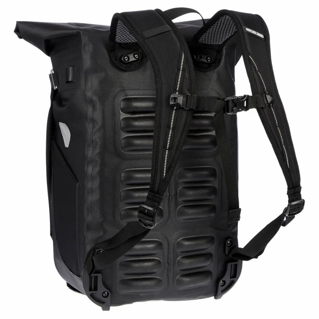 Der Clou: Du kannst es von der einen Seite auf die andere Seite in Sekunden umklappen und fixieren. Fertig ist die Fahrradtasche, respektive der Rucksack! Einfacher kann man samt Tasche gar nicht vom Drahtesel auf Schusters Rappen wechseln. Das Flap schützt jeweils die abgedeckte Seite. Und es bewahrt dich vorm Schmutz, der eventuell vom Hinterrad an deine Packtasche geschleudert wurde. In der Rucksack-Position hat das Flap außerdem noch ein RV-Fach, das du als Rucksack-Vorfach nutzen kannst. An der Seite hat der Rucksack eine Netzaußentasche, im Hauptfach eine Laptop-Innentasche.