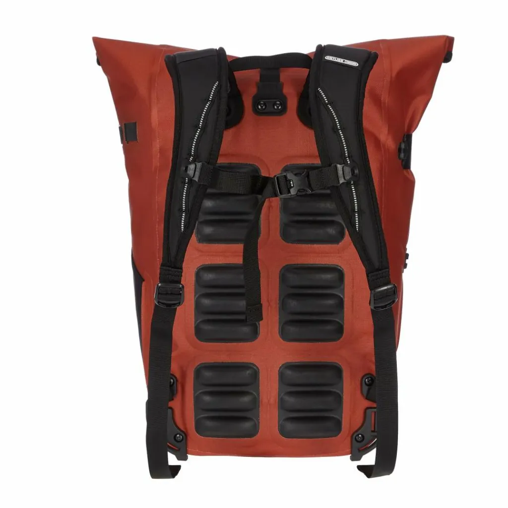 Der Clou: Du kannst es von der einen Seite auf die andere Seite in Sekunden umklappen und fixieren. Fertig ist die Fahrradtasche, respektive der Rucksack! Einfacher kann man samt Tasche gar nicht vom Drahtesel auf Schusters Rappen wechseln. Das Flap schützt jeweils die abgedeckte Seite. Und es bewahrt dich vorm Schmutz, der eventuell vom Hinterrad an deine Packtasche geschleudert wurde.