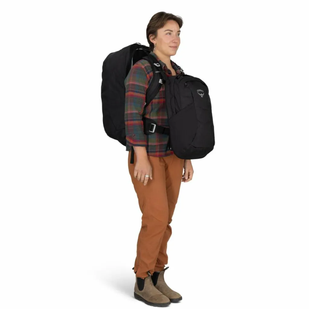 Wenn du dich nicht zwischen Koffer und Rucksack entscheiden kannst, hat Osprey die perfekte Lösung für dich: Der Fairview 55 punktet mit aufklappbarer Front sowie einem verstaubaren Tragesystem.