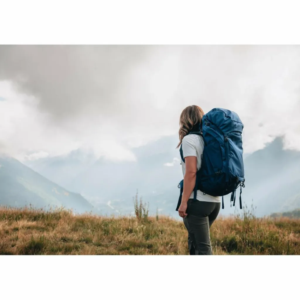 Eine verwindungssteife Rückenplatte und ein leichter Aluminiumrahmen verteilen das Gewicht gleichmäßig und entlasten dadurch deine Schultern. Der körpernahe Sitz hält den Schwerpunkt zudem nah am Rücken, sodass du in unwegsamem Gelände von besserer Lastenkontrolle und Stabilität profitierst. Gleichzeitig lassen 3D-Mesh an den Hüft- und Schultergurten sowie Belüftungskanäle am Rücken Schweiß nach außen entweichen. So trägt sich der Kyte LT 65 auch auf anstrengenden Touren noch äußerst angenehm.