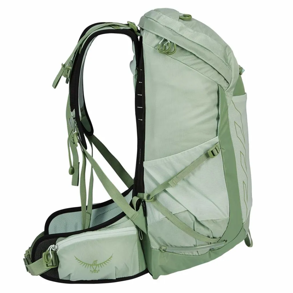 Mit der Neuauflage des Tempest geht Osprey einen weiteren Schritt in Richtung nachhaltigerer Produktion. Denn neben dem Hauptmaterial ist jetzt auch die Rückenplatte zu 100% recycelt. Mesh und Polster am Rücken und den Hüftgurten sind nun ebenfalls anteilig aus recyceltem Material.