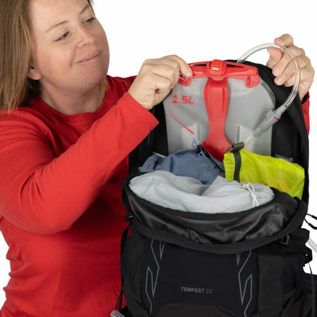 Besonders praktisch ist auch Ospreys Stow-on-the-Go Trekkingstockhalterung, mit der du deine Stöcke auch mit geschultertem Rucksack bequem erreichst. Und für alle, die auch gern auf zwei Rädern unterwegs sind, ist der Tempest mit einer LidLock-Helmhalterung ausgestattet.