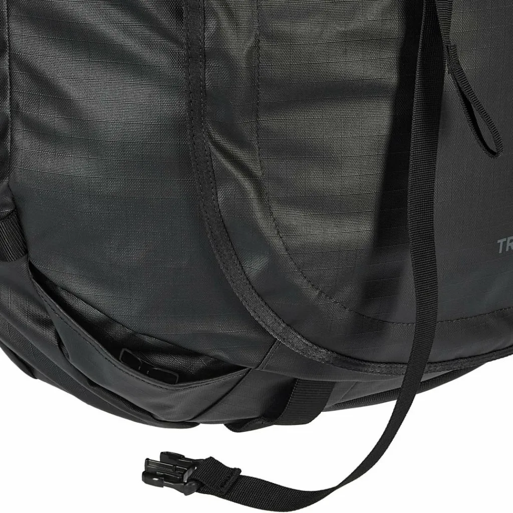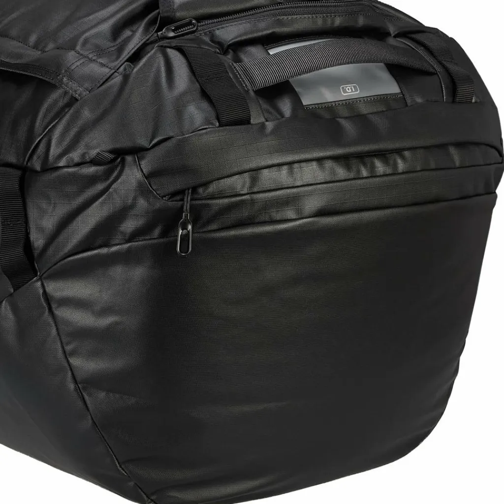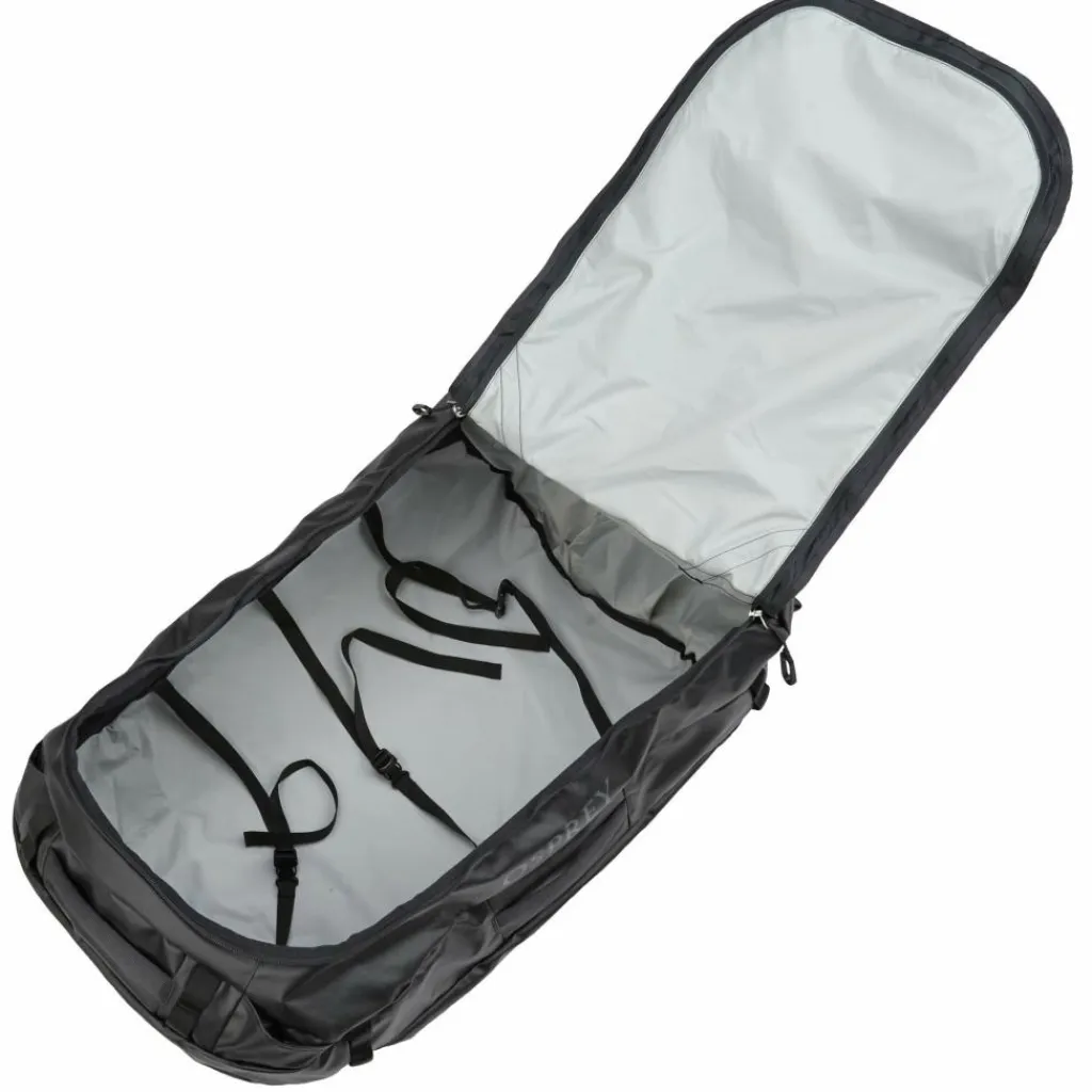 Die Duffel besitzt vier feste Handgriffe, die ein einfaches Verstauen und Festzurren im Flugzeug oder auf dem Autodach möglich machen. Obendrein ist sie mit bequemen Rucksackgurten ausgestattet. Diese sind aus einem weichen, perforierten Schaum und mit einem atmungsaktiven Netzstoff bezogen. Ein verstellbarer Brustgurt mit Signalpfeife hält die Träger an Ort und Stelle.