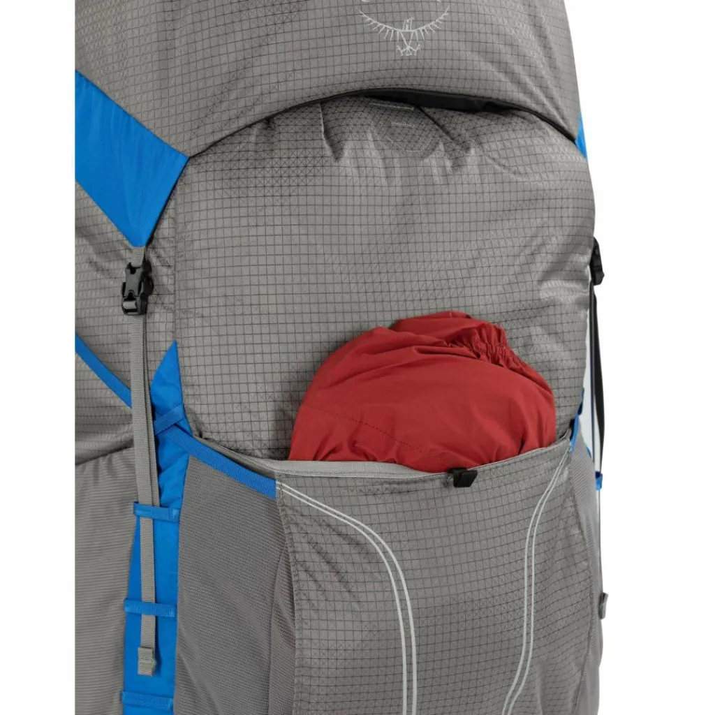 Damit ist er wie gemacht für Fernwanderungen oder wenn du am liebsten mit wenig Gewicht unterwegs bist. Nimmst du den Deckel und die seitlichen Kompressionsriemen ab, wird der Rucksack noch etwas leichter. Das FlapJacket schützt dann das Hauptfach vor Wettereinflüssen. Neben dem großen Hauptfach verfügt der Exos Pro 55 über drei elastische Außenfächer und mehrere Materialschlaufen, wo du zusätzlich Ausrüstung unterbringen bzw. dranhängen kannst.