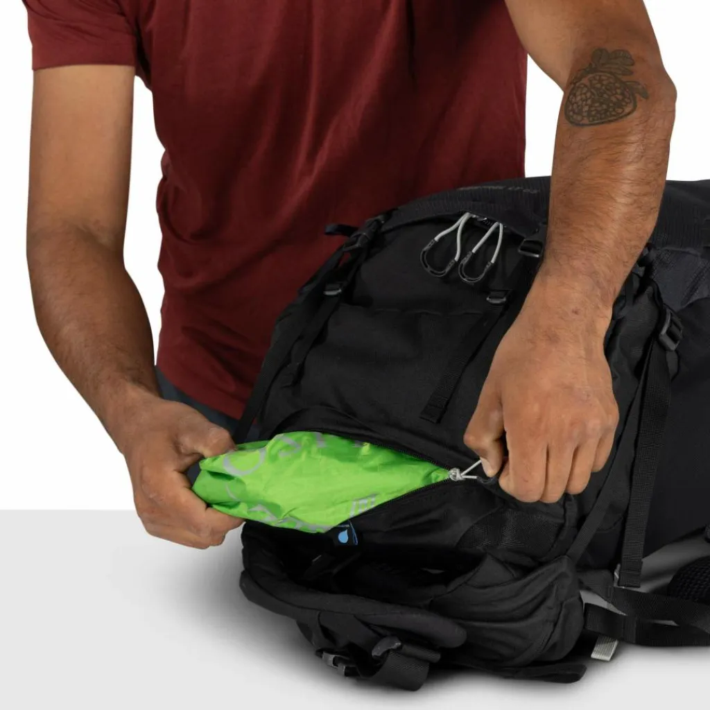 Auf mehrtägigen Touren behältst du dank der intuitiven Fächer stets den Überblick über deine Ausrüstung. Das geräumige Hauptfach lässt sich für entspanntes Bepacken auch seitlich öffnen. Daneben bieten zwei RV-Fächer im Deckel dir Platz für Dinge, auf die du schnellen Zugriff möchtest, zum Beispiel dein Erste-Hilfe-Set oder Taschenmesser. Dank zweier Fächer auf den Hüftflossen musst du den Rucksack für kleine Snacks auf dem Trail nicht abnehmen. Wenn du auch deinen Durst löschen möchtest, ohne den Rucksack abzunehmen, kannst du den Kestrel LT 45 zusätzlich mit einer Trinkblase bestücken (optional erhältlich).