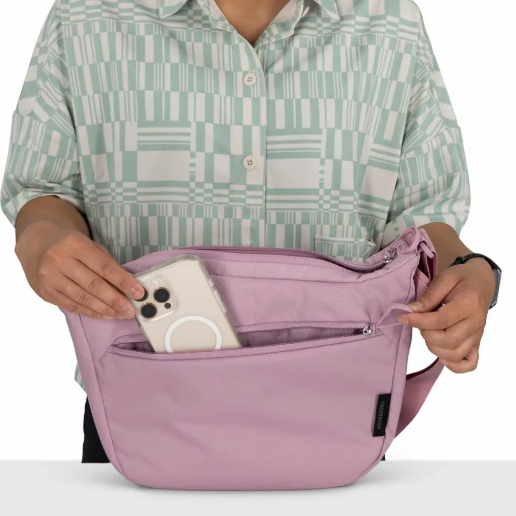 Gleich zwei versteckte Fächer bietet die Daylite Crossbody Pouch: Eines für Wertsachen auf der Rückseite und eines für die Trinkflasche vorne.