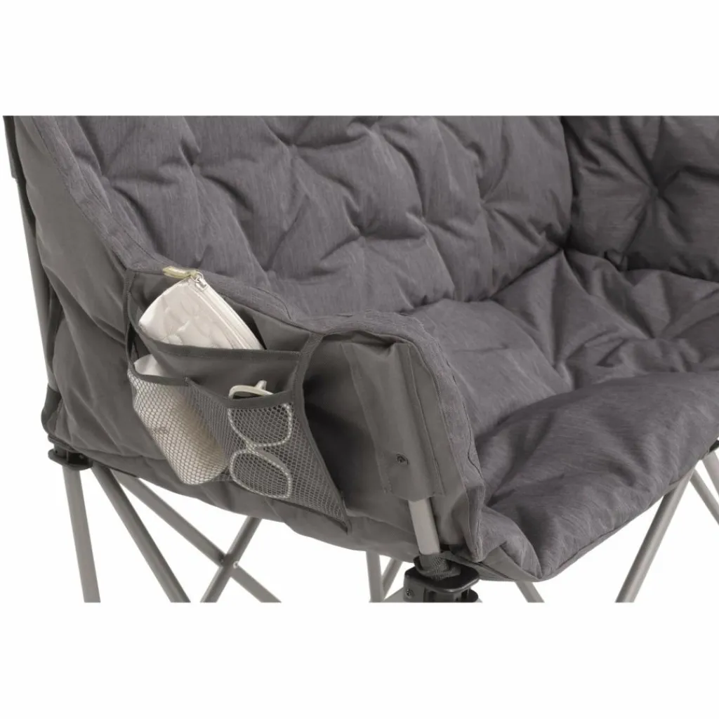 Den Sardis Lake kannst du in Sekunden auf- und abbauen. Der Stuhl hat an einer Seite praktische Fächer, in der du Buch, Sonnenbrille oder Handy unterbringen kannst. Sitzfläche und Rückenlehne sind leicht gepolstert und dadurch isoliert. Damit lassen sich auch kühle Abende bequem und geschützt genießen.