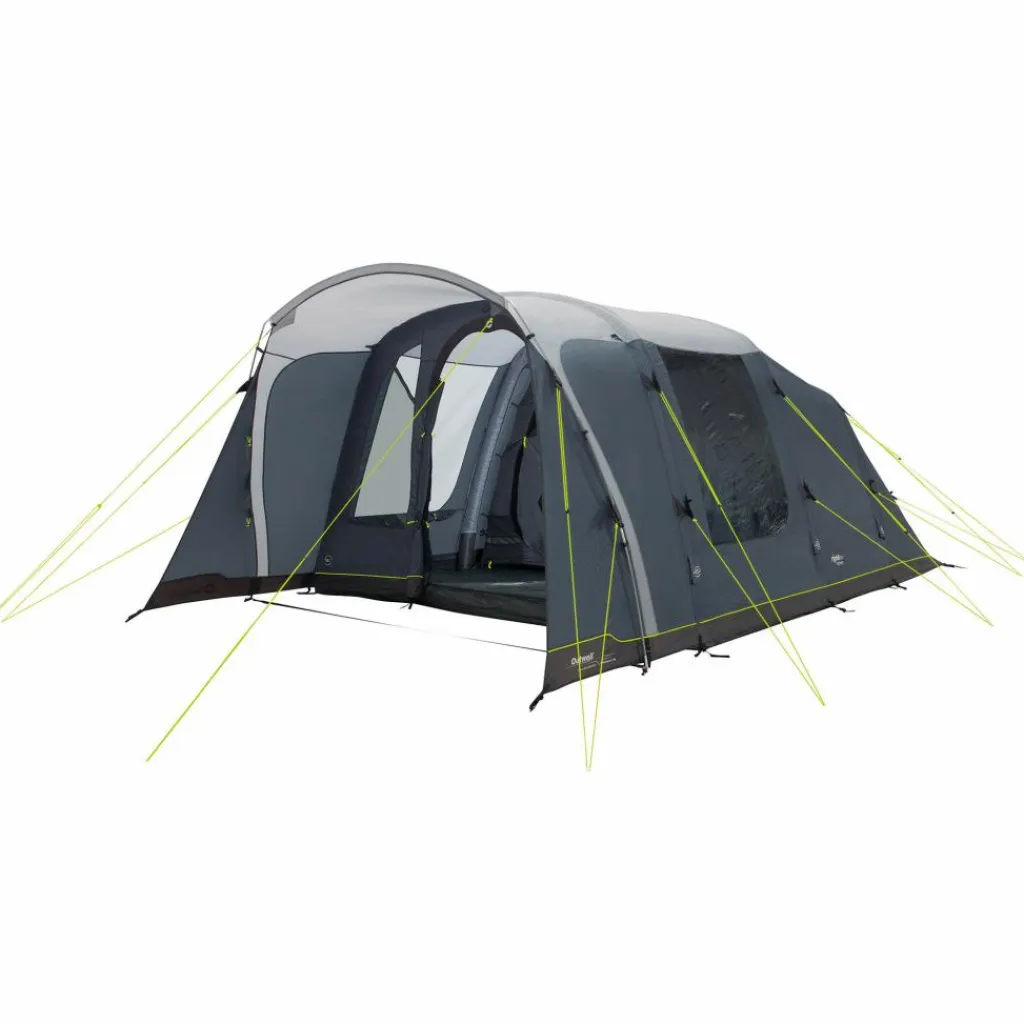 Das Monterey 5 Air ein großes Familienzelt, das sich dank Luftgestänge unkompliziert aufbauen lässt. Eine weittergeschützte Apsis mit großen Fenstern sorgt an Regentagen für Gemütlichkeit.