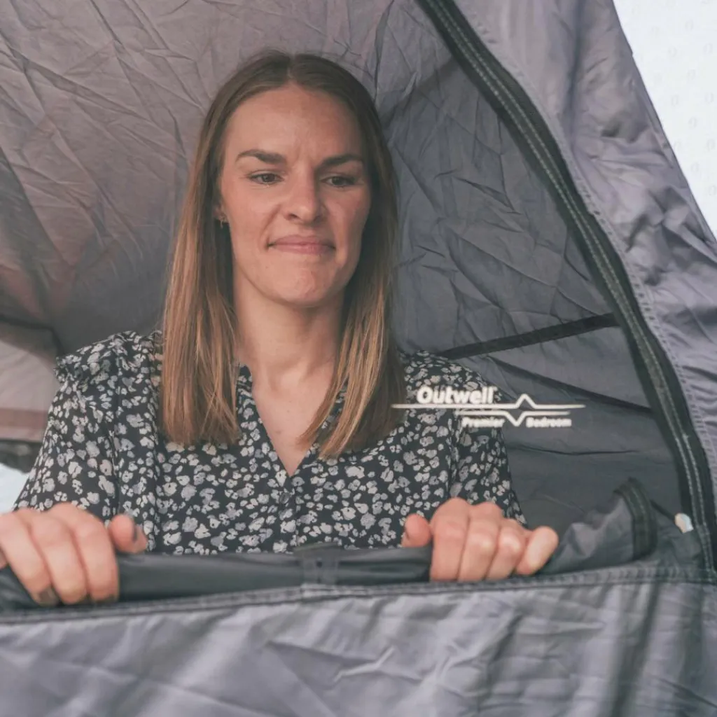 Komfort spielt beim Monterey 5 Air eine große Rolle. So sind die Innenzeltkabinen abgedunkelt, damit du ungestörten Schlaf genießt. Langschläfer freuen sich über Magnetverschlüsse an den Türen, denn damit kannst du die Türen leise öffnen und schließen, wenn du morgens vor den anderen wach bist. Für gemütliche Stunden auch tagsüber besteht das Dach der Apsis aus einem hellen Material, das für ein warmes Licht sorgt. Und dank der gegenüberliegenden Belüftungsöffnungen ist immer für frische Luft gesorgt.