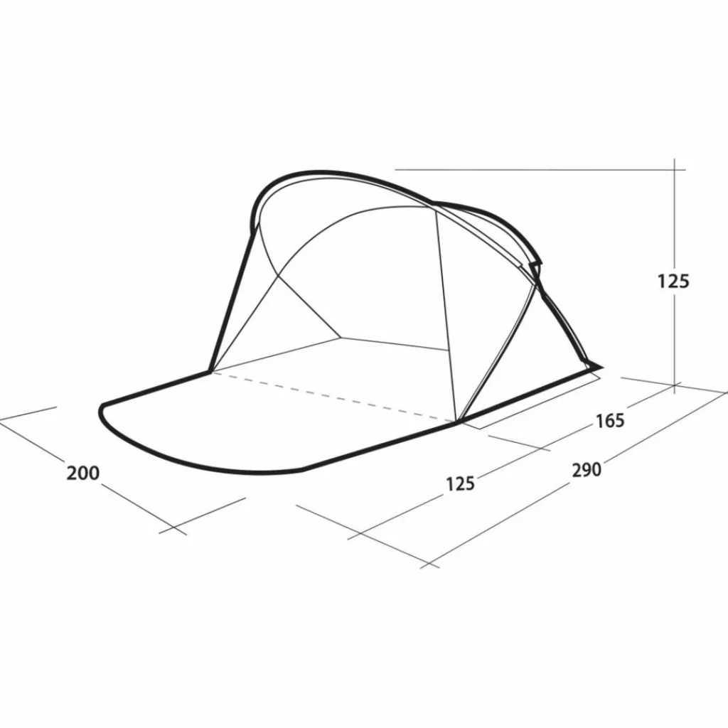 Die Strandmuschel Whitby Beach Shelter von Outwell ist in wenigen Minuten aufzubauen und bereit zum Einzug in den Schatten. Das Zeltmaterial bietet dabei einen UV-Schutz von UPF 50+.