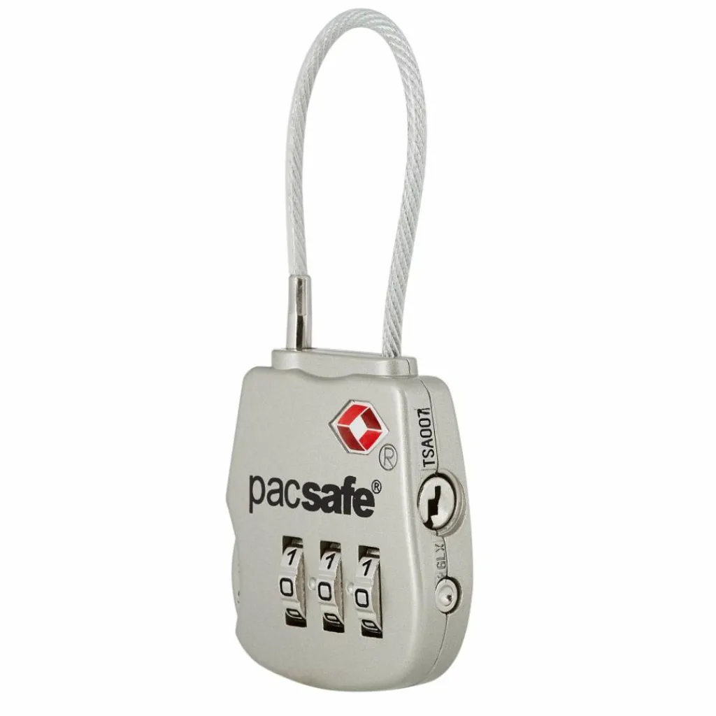 Das Edelstahlkabel ist 10 cm lang und wird per 3-stelliger und frei wählbarer Zahlenkombination verschlossen. Das praktische Vorhängeschloss ist Travel Sentry Approved (TSA) und kann somit von US-Sicherheitsbehörden beschädigungsfrei geöffnet werden.