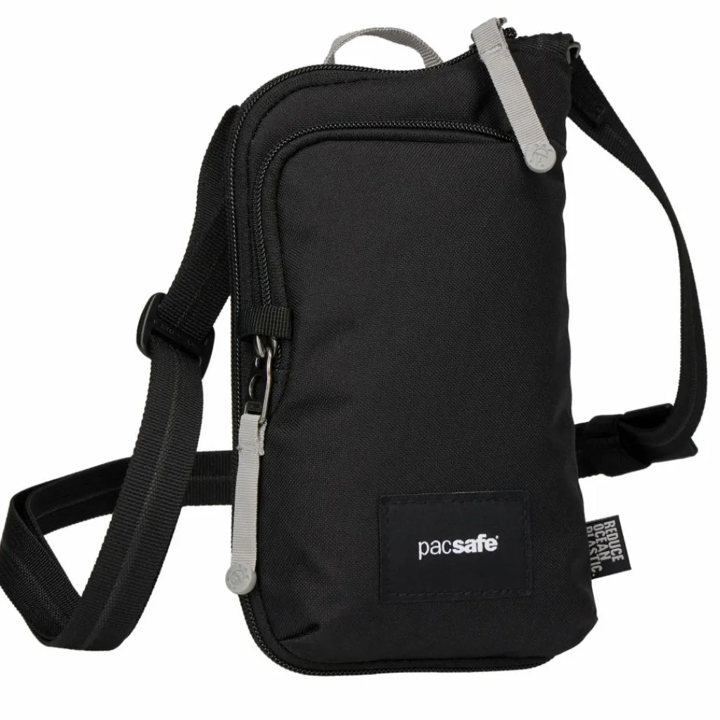 Die Marke mit der Schildkröte im Logo macht sich bereits seit vielen Jahren für den Schutz der Meeresschildkröte stark. Dazu gehört zum einen die Vermeidung von Plastikmüll, weshalb die Go Tech Crossbody aus recycelten Plastikflaschen hergestellt ist. Zum anderen gibt Pacsafe jährlich Fördergelder an Non-Profit-Organisationen, die sich der Sicherheit und dem Erhalt der Tiere und ihrer Lebensräume verschrieben haben (Pacsafe Turtle Fund).