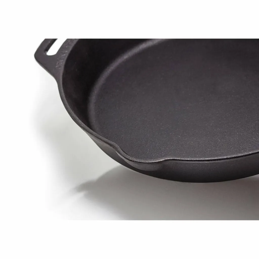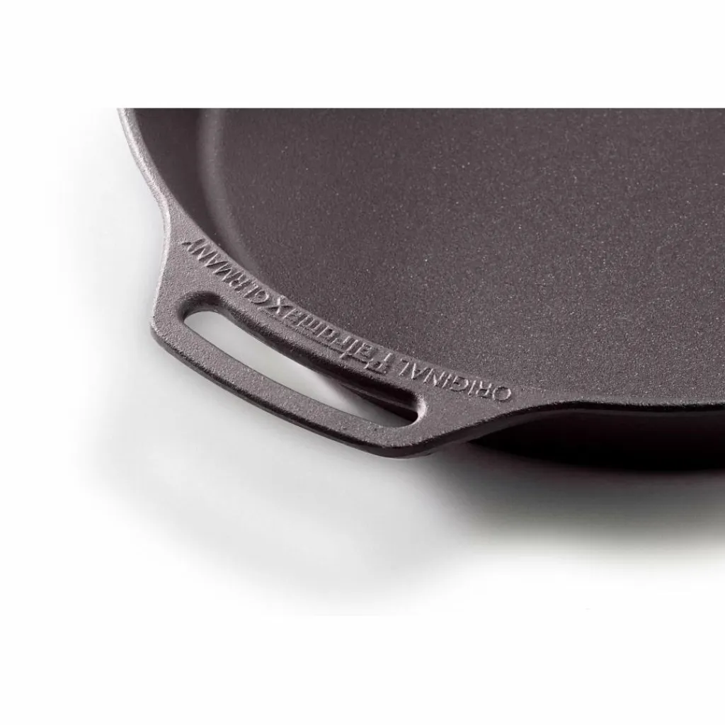 Komplett aus schwerem Gusseisen hergestellt, stellt diese Pfanne eine neue Art des Outdoorbratens über offenem Feuer oder der Kochstelle dar. Durch die vorbehandelte Oberfläche sofort einsetzbar.