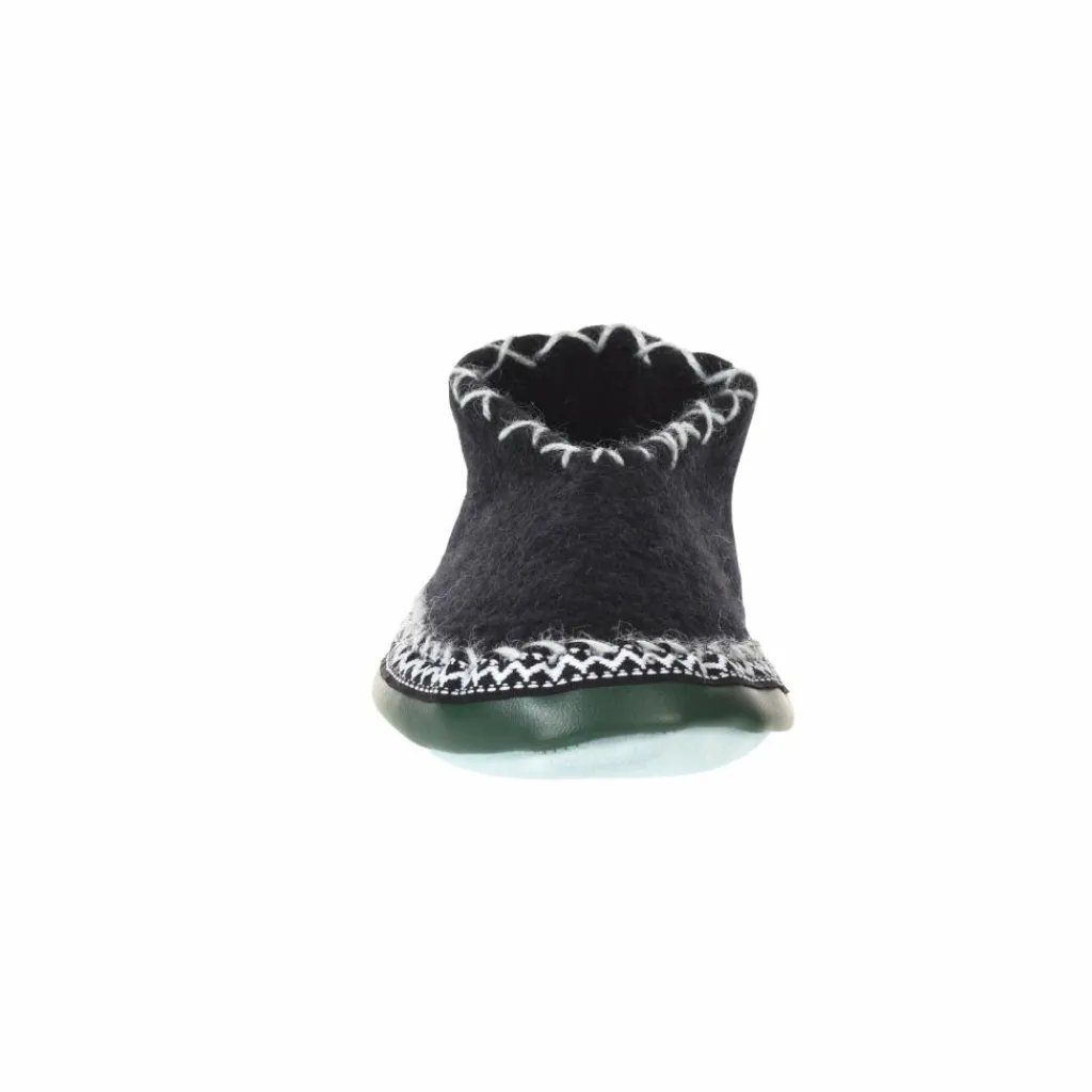Nostalgischer Hüttenschuh für stilvolle Après Ski-Abende. Warm, weich und stilecht mit umkettelter Zierbordüre und geketteltem Knöchelrand.
