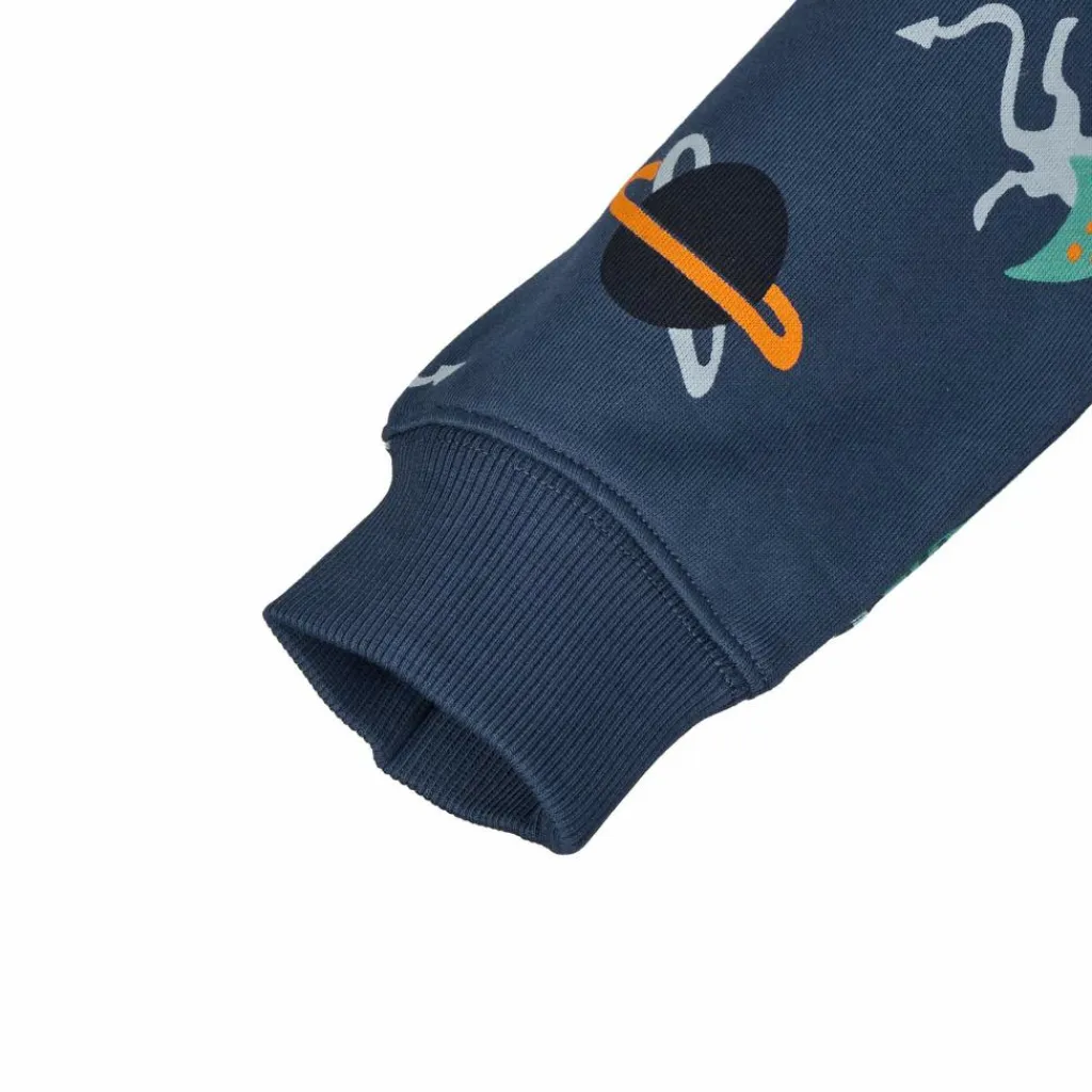 Damit sich kleine Naturwissenschaftler:innen nicht zwischen Dinos und Astronomie entscheiden müssen, bietet das Run Sweatshirt gleich beides. Das weiche Shirt ist aus 100 % Bio-Baumwolle und passt einfach immer! Ausschnitt und Ärmelabschlüsse sind mit sanften Rippenbündchen besetzt.